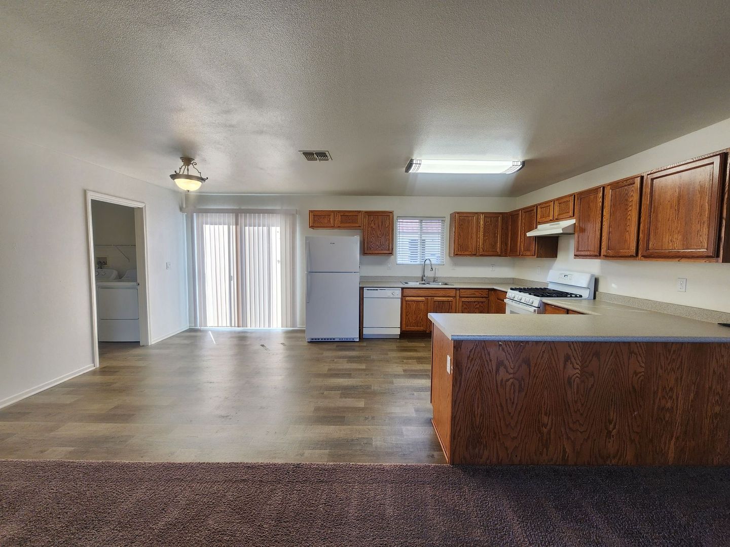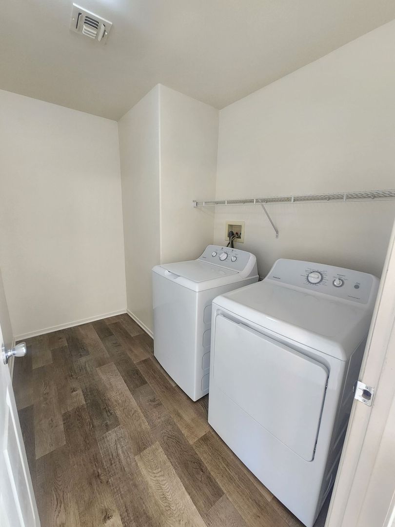Laundry room comes with a washer and dryer. Right outside of the sliding glass door is a nice fenced in yard. Unit comes with an exterior storage unit and one covered parking spot.
