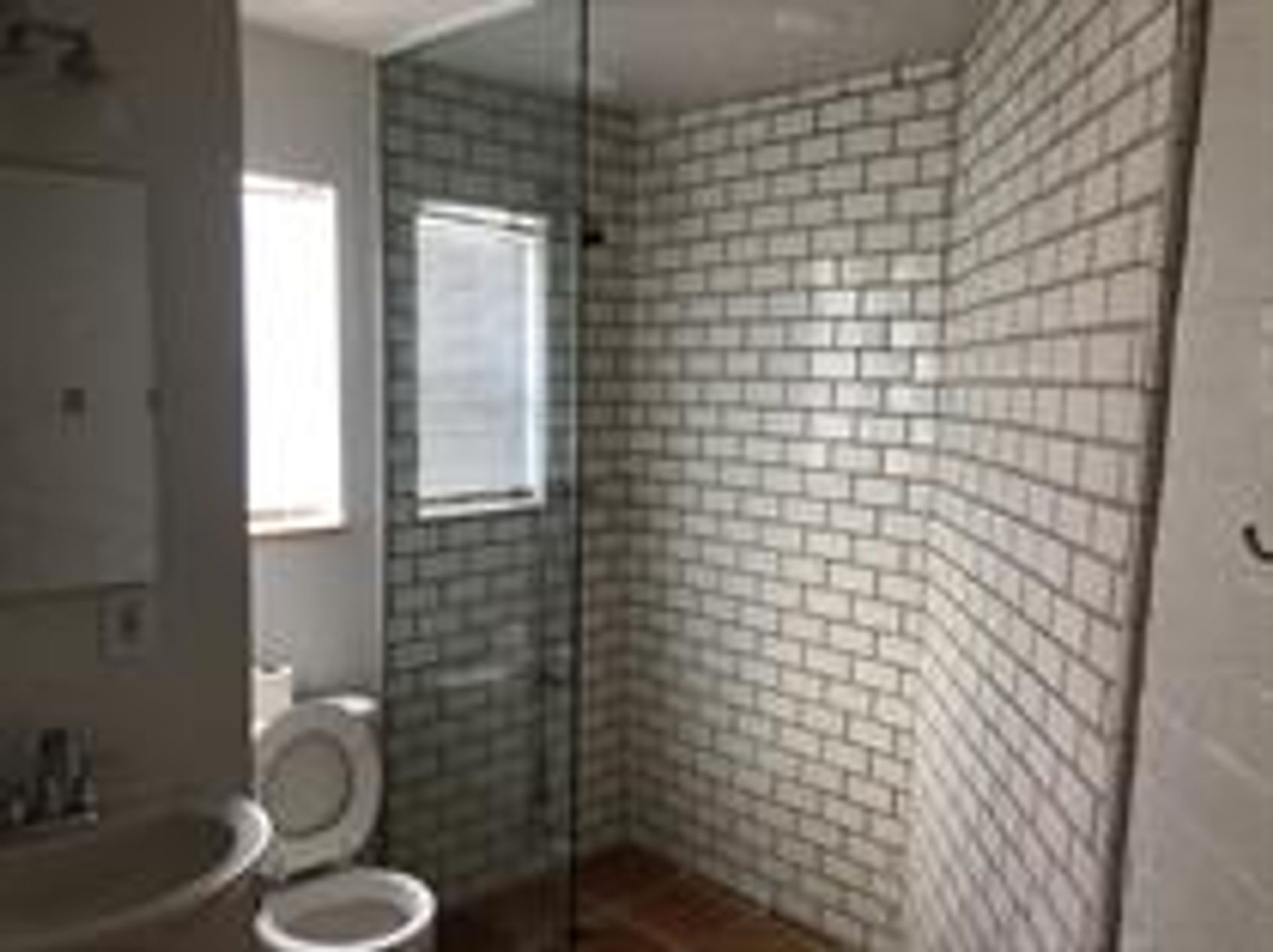 -large bathroom with a beautiful glass shower.