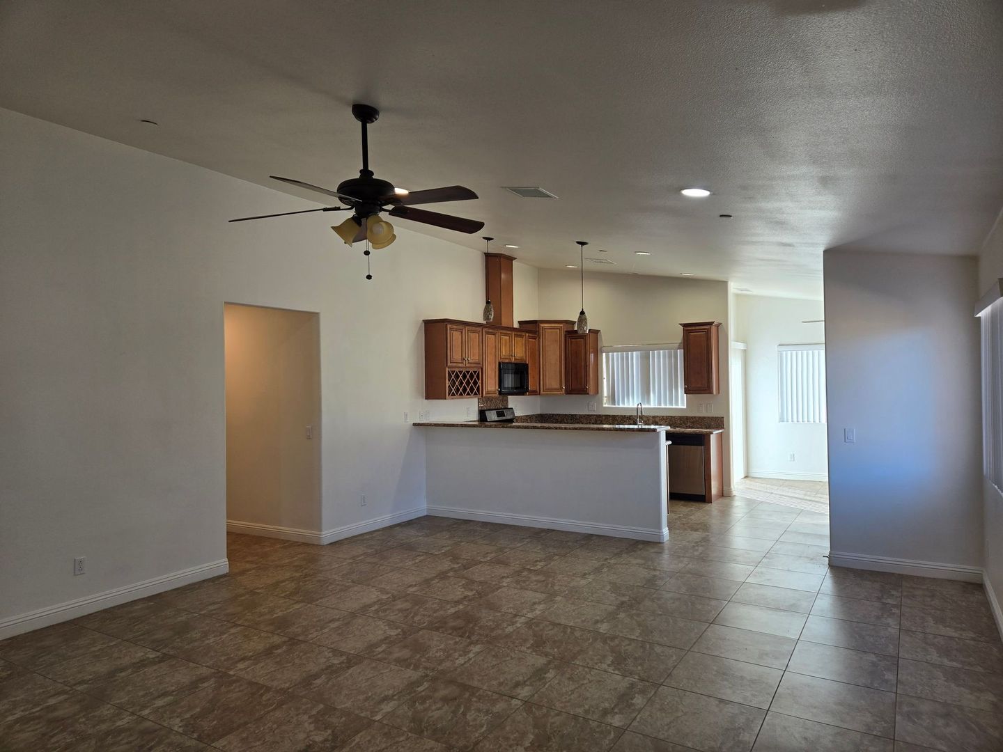 -open living and kitchen area
