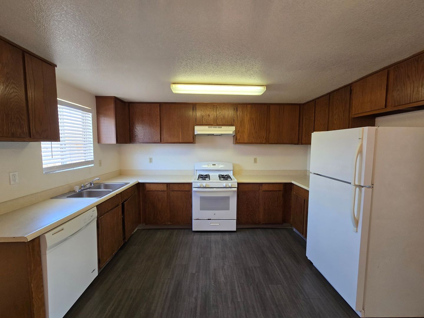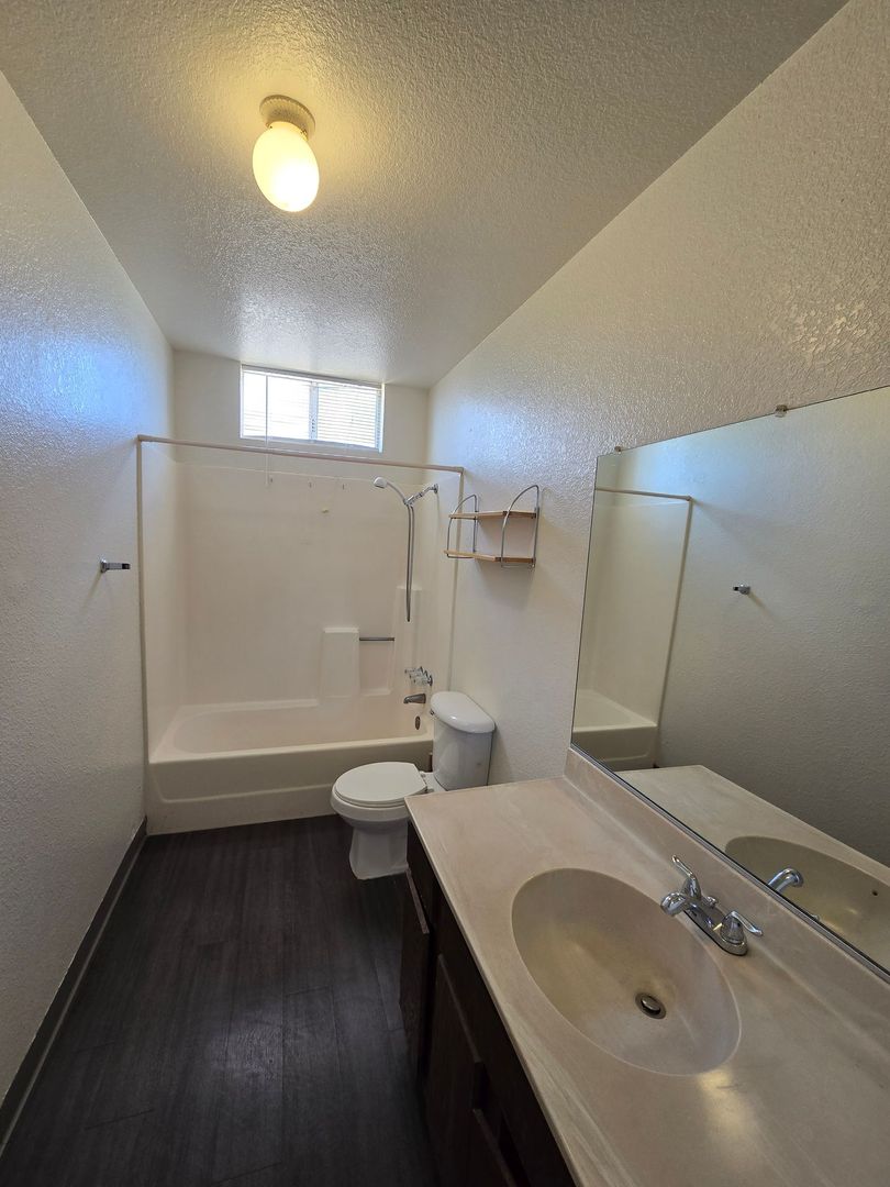 2 Bedroom, 1 Bathroom, garage + 2 Parking Spaces, Gas Stove and Heater (Wall), Cooling Both swamp and AC, refrigerator, dishwasher, Washer/Dryer Hookups (located in unit) (Both Gas and Electric)