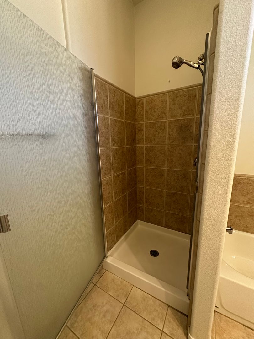 -Primary bedroom has walk in closet and backyard access
