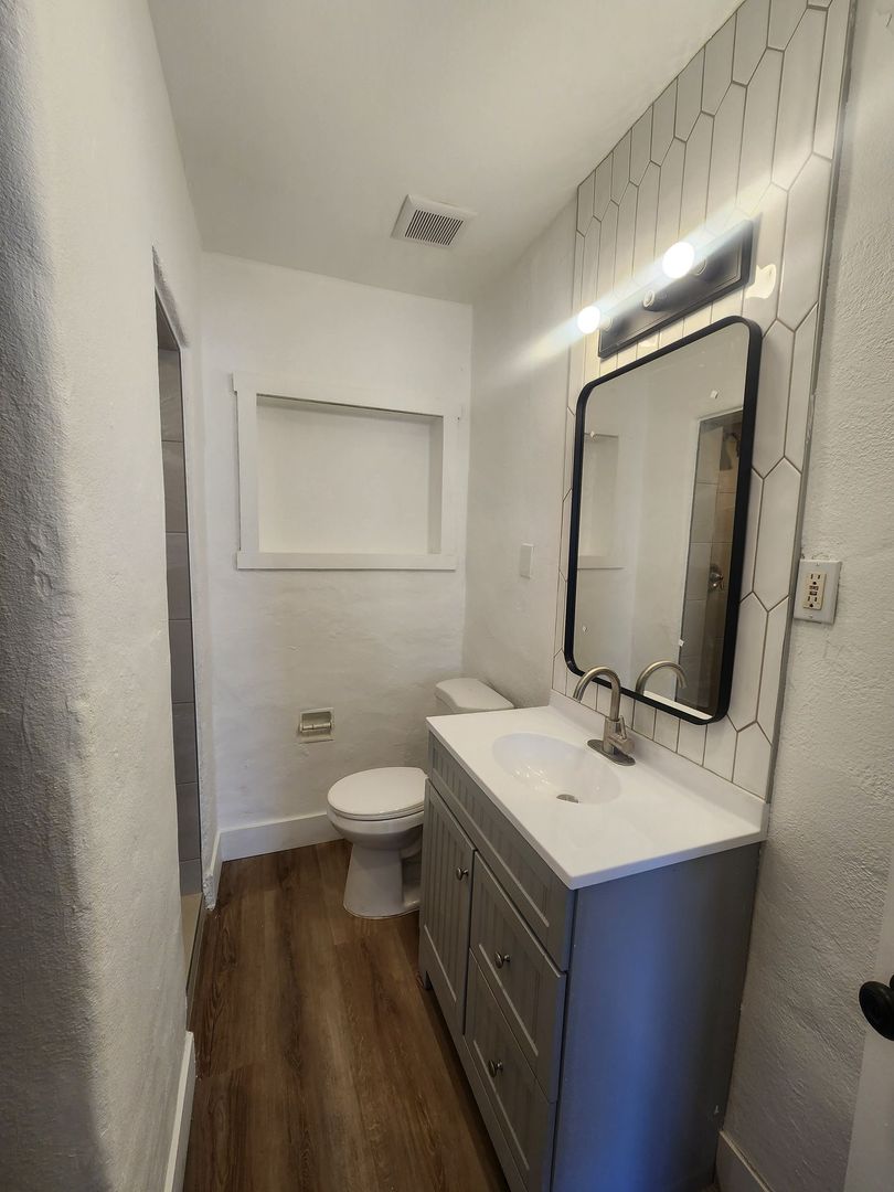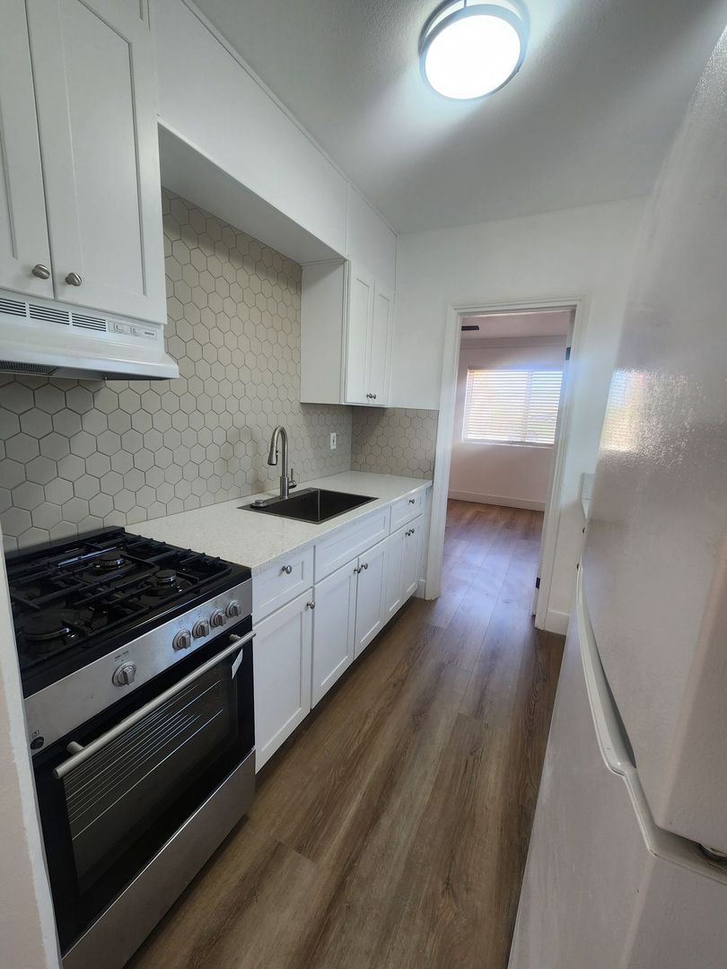 new floors fresh paint, new stove! fridge, private fenced back yard!