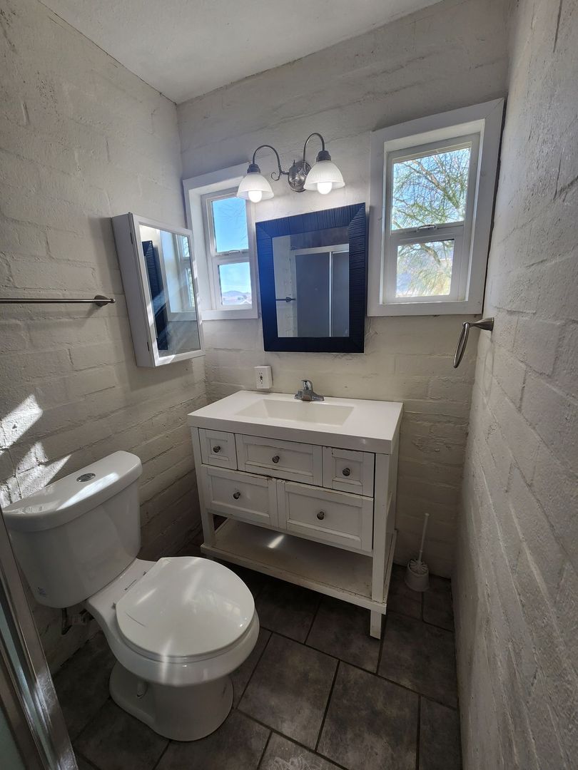 This newly remodeled 1 bedroom apartment has been completed renovated. Located in Downtown 29 palms, this apartment offers a Mini split system for all your heating and cooling needs. New laminate flooring throughout. Updated bathroom! Storage space throughout! Spacious private backyard! All appliances are updated. Washer and Dryer included! Please call to schedule a viewing. (760)361-3080. $40 application fee. Roadrunner Realty Inc. DRE# 01517134